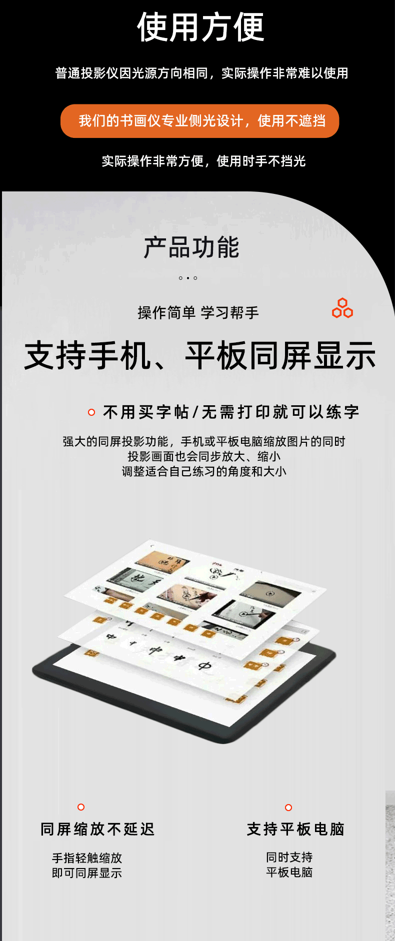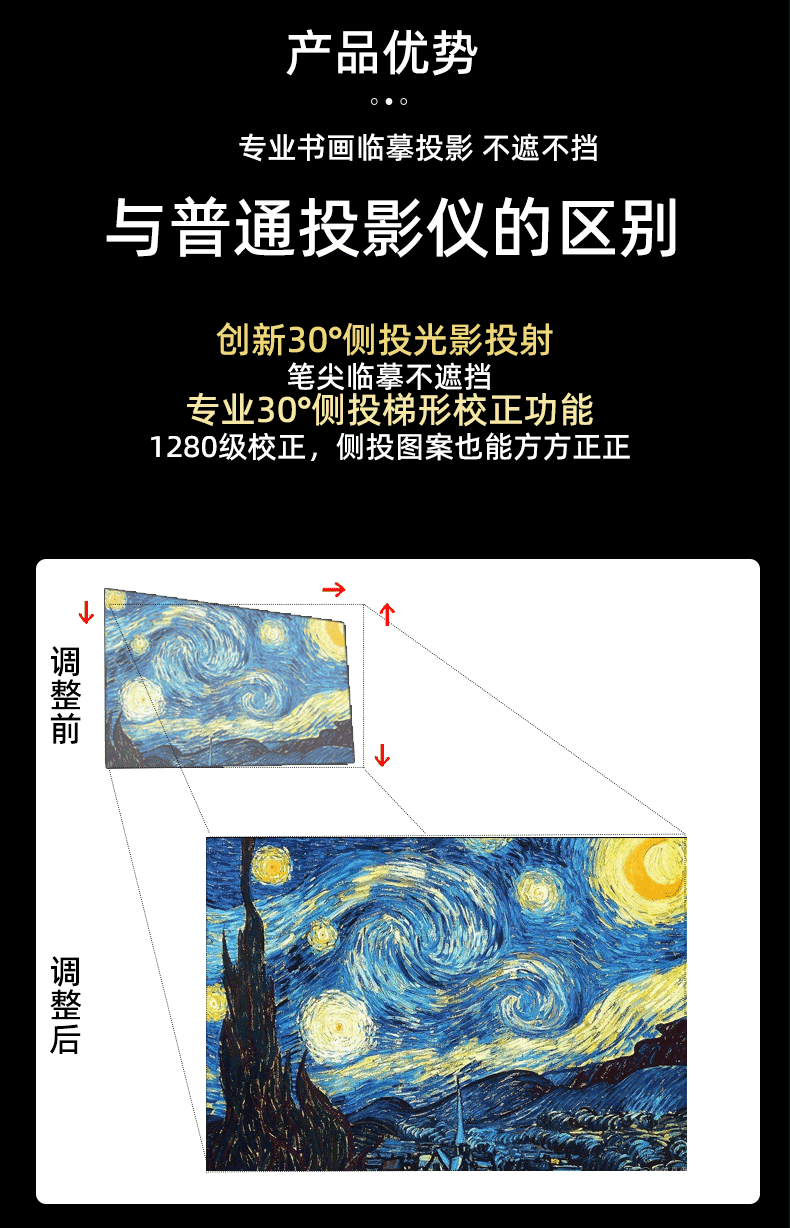 内置专用临摹APP,轻松实现投影画面和纸张角对角边对边对齐。