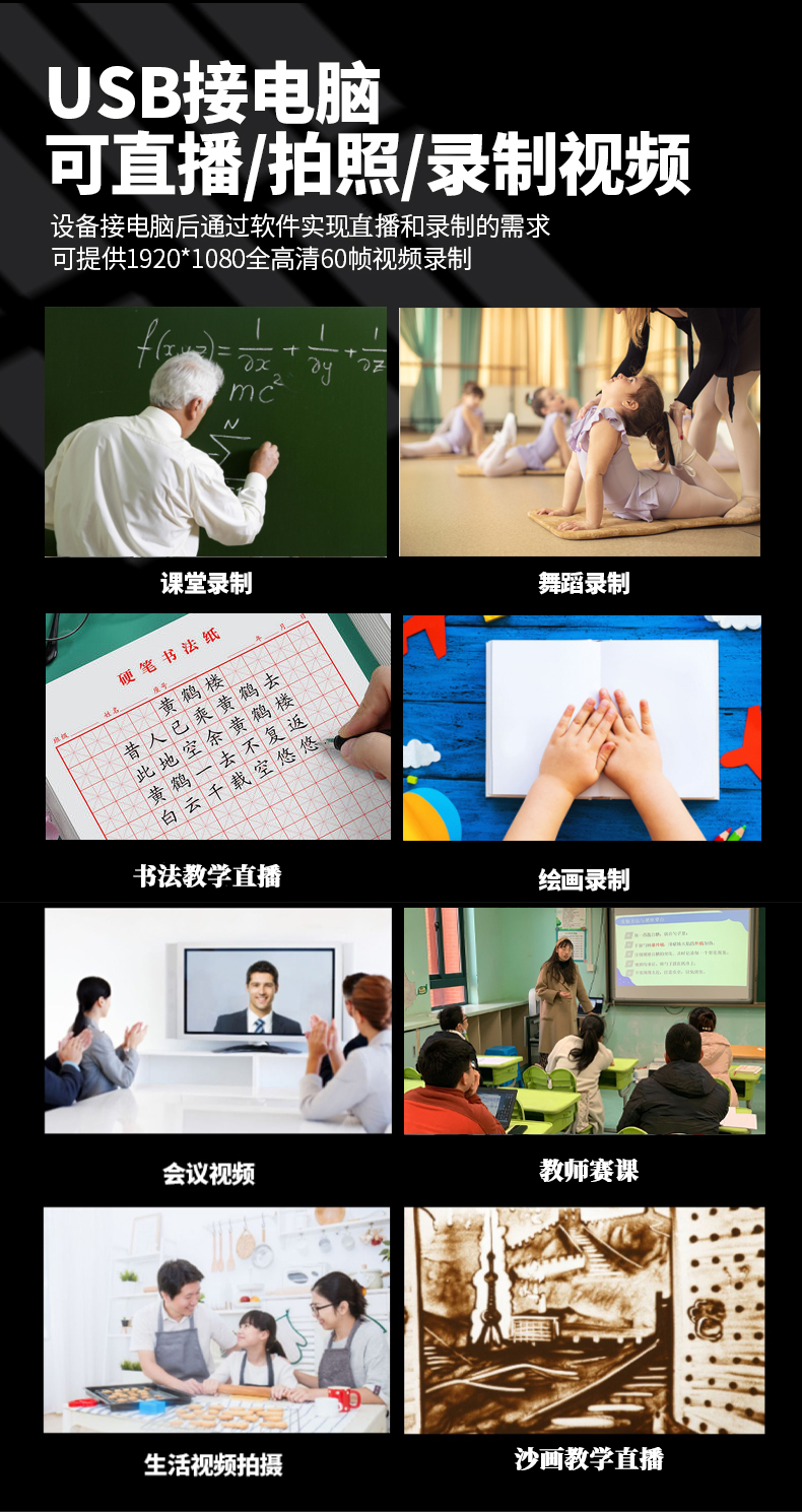 书法网课光学变焦hdmi直播摄像头4k高清教学高拍仪实物展台连电视